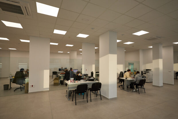 El nou local ha millorat la distribució d’espais, delimitant la zona d’espera per a la ciutadania respecte als llocs d’atenció; i també s’ha incrementat l’espai entre les taules per garantir la privacitat de la informació. Així mateix, el disseny ergonòmic de les taules de treball servix d’actuació preventiva per a evitar danys a la zona lumbar el personal que atén de manera presencial els contribuents.